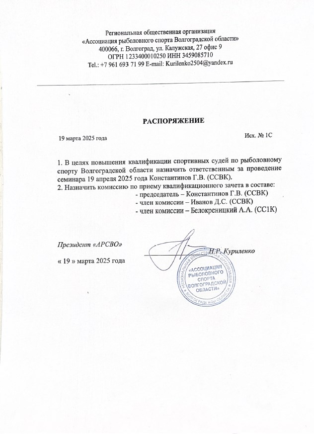 19 апреля на Кубке области по ловле донной удочкой в п. Кумовка, Калачевского р-на, Волгорадской области будет проведится семинар для судей 1, 2, 3 категории и б/к. Всем кому нужно для практики советуем присутствовать в качестве слушетеля или лектора. Обязательное присутствие для прохождения семинара и сдачи квалификационного зачета на получение 3 судейской категории: