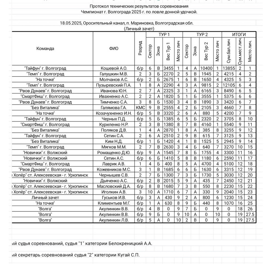 |  Здравствуйте всем. Пришло время отчитаться за прошедший 18 мая Чемпионат Волгограда по ловле донной удочкой, просвещённый памяти майора инженерных войск Фетисова Ильи. Соревнования были очень интересные так как водоём не предсказуемый. Тренировки показали что рыба присутствует в большом количестве, но не тут то было. Первый тур с весом чуть больше двух килограммов и двойка в зоне. Второй тур чуть меньше двух килограммов и опять двойка (как в знаменитой картине). Итог второе место в личном зачёте и второе место в командном. Результатом доволен. Отдельное спасибо судьям за отличную работу. И огромное спасибо нашим спонсорам: vk.com/remington_brandvk.com/im/convo/39510321?en... vk.com/poseydon.group?from=... vk.com/rigpro?from=groupsvk.com/wall526093052_101vk.com/gurza34и Александру Лаврику. ( Лучше кормушки Саратова) за предоставленные подарки. Поздравляю всех победителей! В особенности нового обладателя кубка Фетисова - Алексей Кошевой . Благодарю всех участников. До встречи на водоёмах.