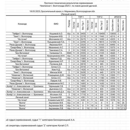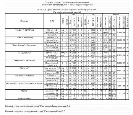 Чемпионат Волгограда по рыболовному спорту (ловля донной удочкой) проводится 18.05.2025 г. на акватории Дамбы подводного оросительного канала в Калачевском районе, п. Приканальный, Волгоградская область. Характер подведения итогов соревнований: соревнования лично-командные. Количество человек в команде – 3. Планируемое количество участников соревнований: 40 человек. К соревнованиям допускаются мужчины, юниоры, юноши 14 лет и старше, без учета спортивной квалификации. Во время лова, расстояние между спортсменами не менее 10 метров. Программа соревнований: